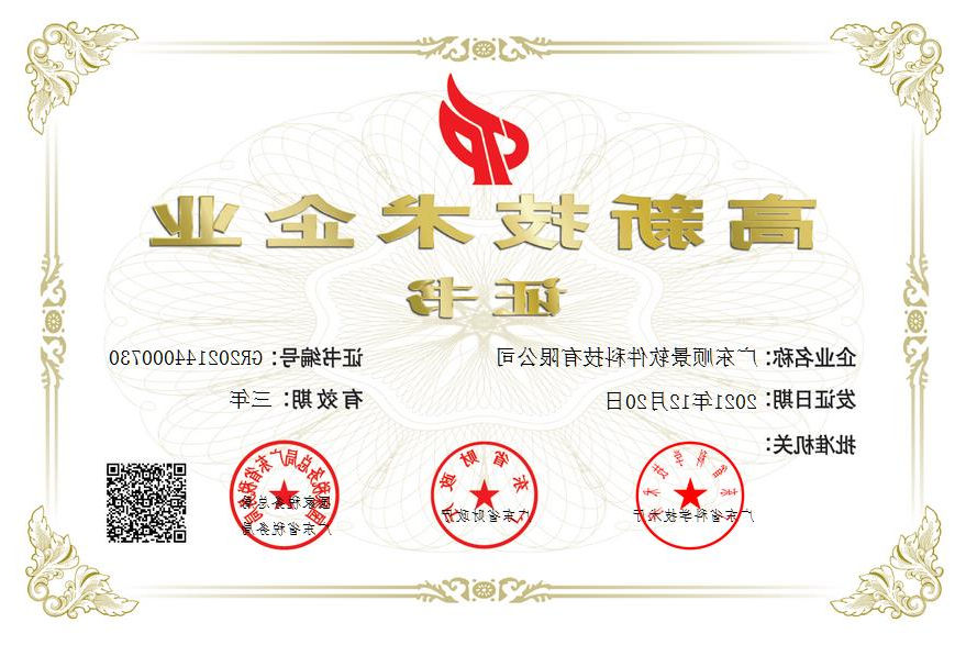 高新技术企业证书