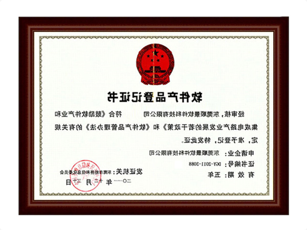 软件产品登记证书