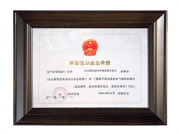 软件企业认定证书