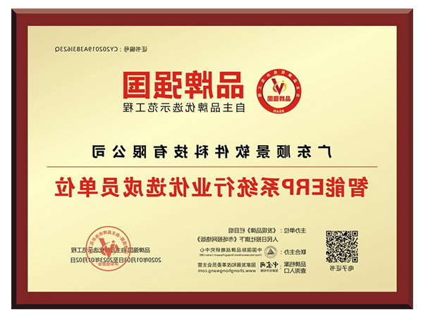 智能erp系统行业优选成员单位电子证书